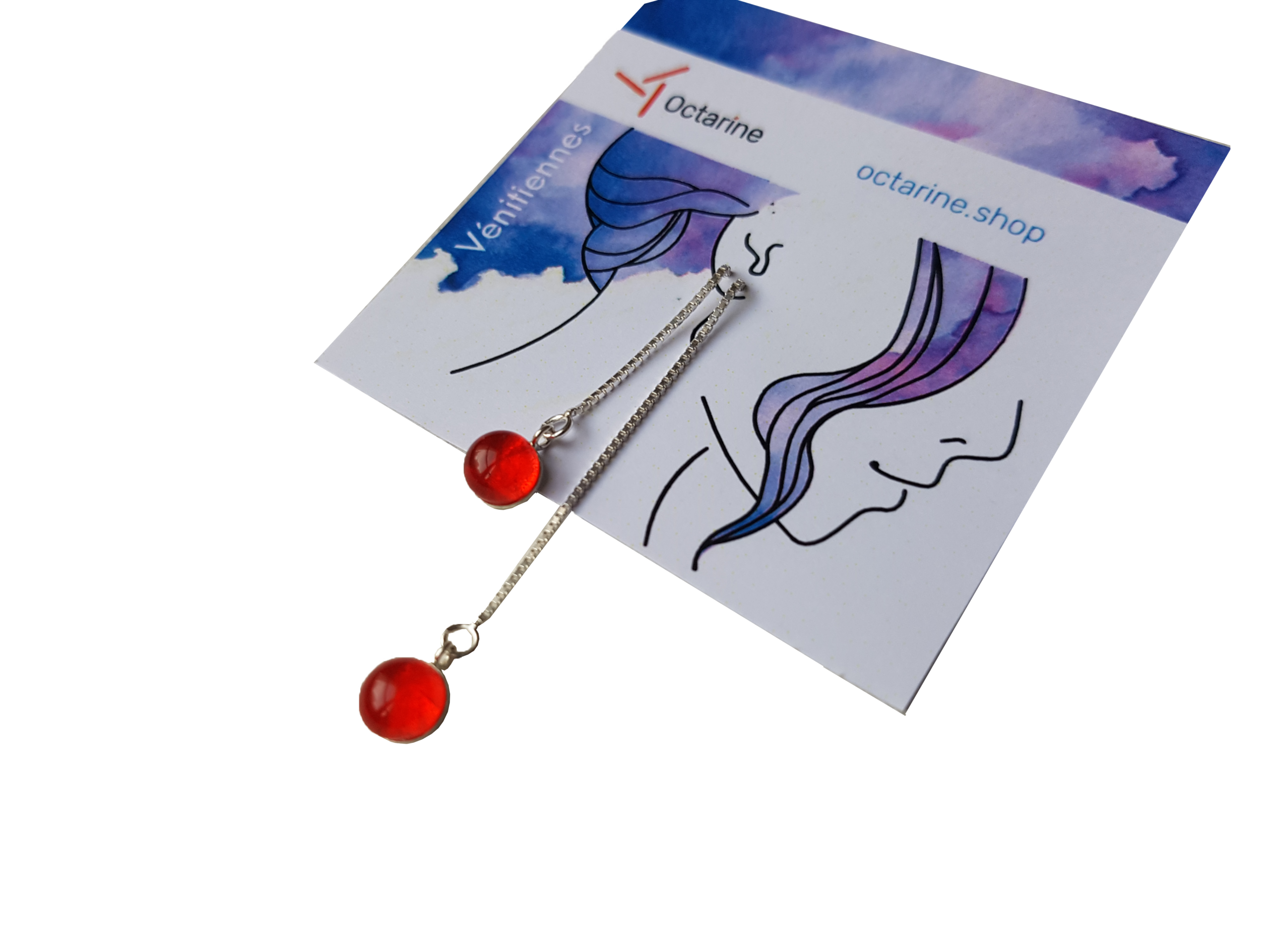 Découvrez une couleur qui change à la lumière, passant d’un rouge profond, allant du grenat au rouge vif, jusqu’à des éclats couleur rubis. Les formes sont fines et élégantes, jusqu’à l’horizontal pour les colliers ou de longues boucles verticales qui accompagnent les mouvements de tête dans un petit tintement délicieux.